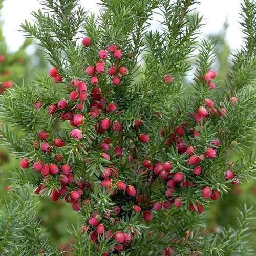 Плоды у тиса среднего Хикси костянки, а не шишки, как у других хвойников, созревают к концу лета и держатся на ветках до поздней осени.