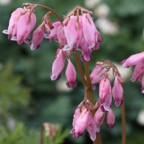 Главная особенность дицентры изящной — уникальные цветки в форме миниатюрных сердечек. Они собраны в изогнутые кисти длиной до 15 см. Оттенки — от лососево-розовых до насыщенно пурпурных. Цветение продолжается с конца мая до середины августа, а при благоприятных условиях — до сентября. Аромат отсутствует, зато визуальный эффект — выразительный и долгий.